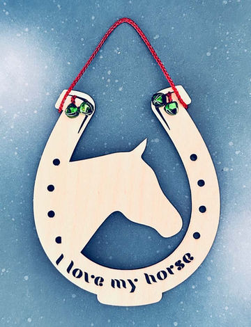 Breed specific and custom name included in our wood Horse in Horseshoe ornament. $15. Order by November 1 for Christmas delivery.
